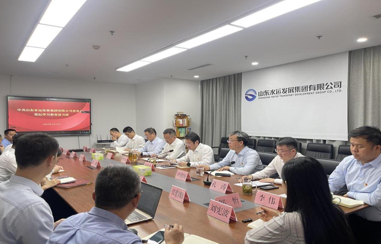 4月26日,水运发展举办党纪学习教育读书班,深入学习贯彻习近平关于党纪学习教育的重要讲话、重要指示精神,贯彻落实中央有关部署和省委、省国资委和集团公司党委工作要求,原原本本学学习新修订的《中国共产党纪律处分条例》,紧扣学习主题进行研讨交流,推动公司党纪学习教育走深走实。