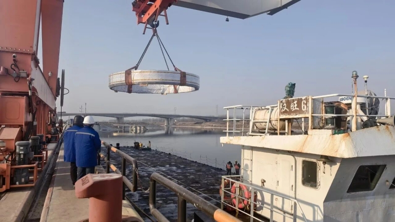 自开港运营以来,章丘港精准锚定超限大件运输特色发展定位,为风电法兰、重型机械等货物打通从企业生产车间到沿海目的港的“绿色通道”,破解了传统陆路运输成本高、风险大、手续繁的痛点,为区域高端装备制造企业提供了高效、绿色、便捷的一体化物流解决方案,持续释放内河港航物流赋能实体经济的强劲动能。