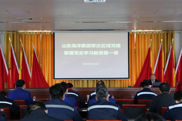 山东海洋枣庄区域党建联盟举行“学党史 明初心 树新风”主题党日暨“绿水青山在心中”植树活动。活动以党史学习教育“第一课”作为开篇,邀请枣庄市委讲师团教研室主任王辉教授专题党课。