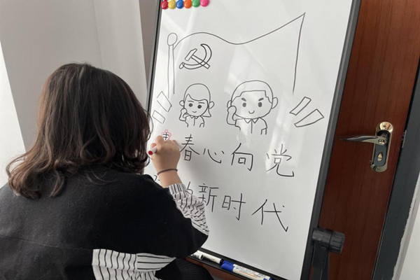 带着对长征精神的深深感动,广大员工纷纷在白板上进行创作,绘制了漫画、标语等,表达自己“讲好党的故事,传承党的精神”的拳拳之心。