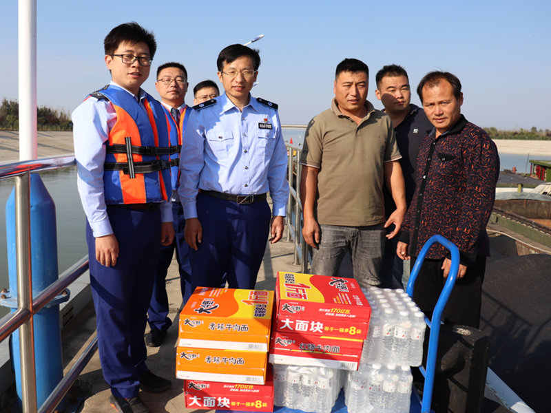 受东平湖行洪影响,京杭运河泰安段全线停航,5艘货船20余名船民滞留八里湾船闸上游。10月12日,泰安分公司组织开展“我为群众办实事”实践活动,为滞留船民送去方便面、热水、口罩、常用药品等急需物资,并现场进行了汛期安全宣传,协助船舶安全停靠。