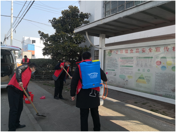在古邵镇社区,志愿者团队自带毛巾、扫帚、水桶、铁锨等工具,对社区周边的爱心屋、公交站牌、绿化带等卫生死角进行了打扫清理,对垃圾桶、公共设施进行喷洒84消毒液,为环卫工人免费发放口罩,引导居民加强环保意识,净化家园,展示了新时代学雷锋志愿者良好精神风貌。