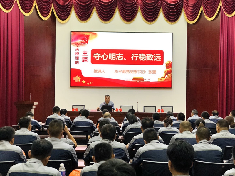 7月1日东平港党支部以“不忘初心、砥砺前行”为主题,开展了丰富多彩的庆“七·一”活动。本次活动包含了全体党员重温入党誓词、港区大扫除、党支部书记上党课、拔河比赛和篮球比赛等活动。