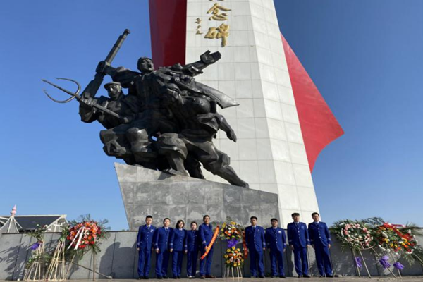 向英雄致敬。微山船闸党支部开展了“学党史 祭英烈”缅怀革命烈士活动。在微山湖抗日英雄纪念碑前,为烈士英雄献上了花篮,表达了对革命先烈的无限敬仰。在纪念馆,听工作人员讲解了一段段悲壮的英雄历史,并用实际行动—为烈士陵园打扫卫生擦拭墓碑,寄托对革命英烈的哀思。